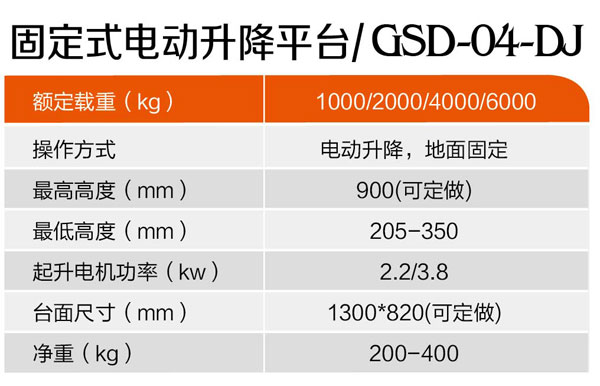 固定式電動升降平臺GSD-04-DJ